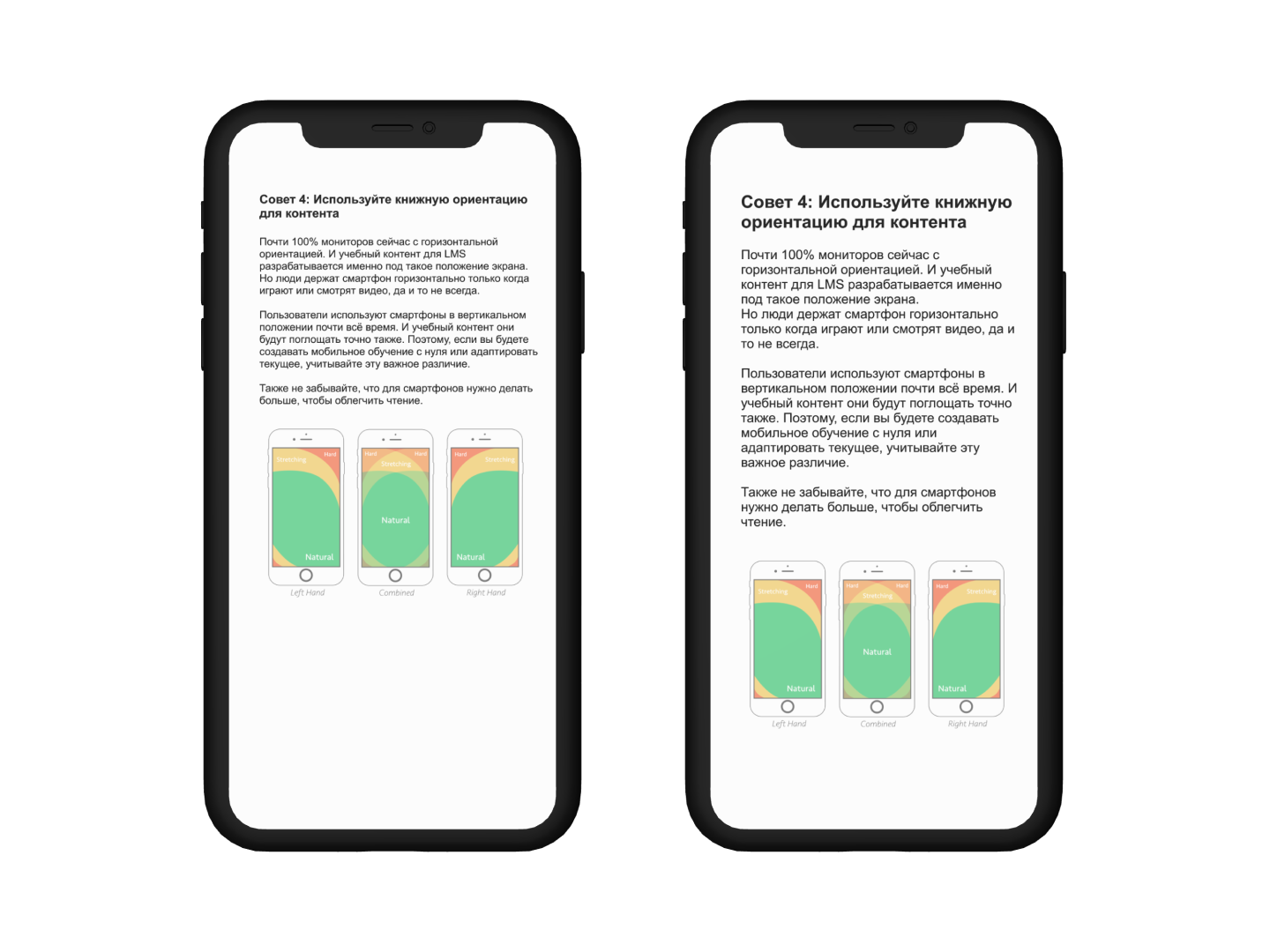 Пользователи используют смартфоны в вертикальном положении почти всё время. И учебный контент они будут поглощать точно также. Поэтому, если вы будете создавать мобильное обучение с нуля или адаптировать текущее, учитывайте эту важное различие.