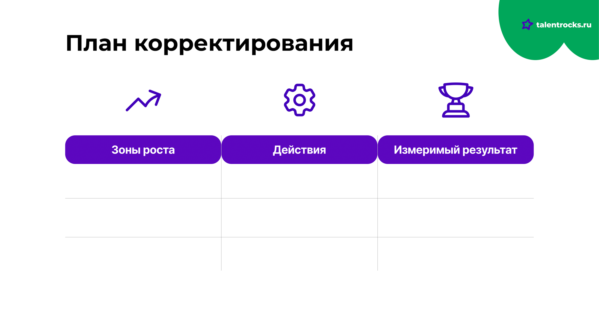 В этом шаблоне нужно указывать конкретные программы или действия, необходимые для успешного завершения программы развития.