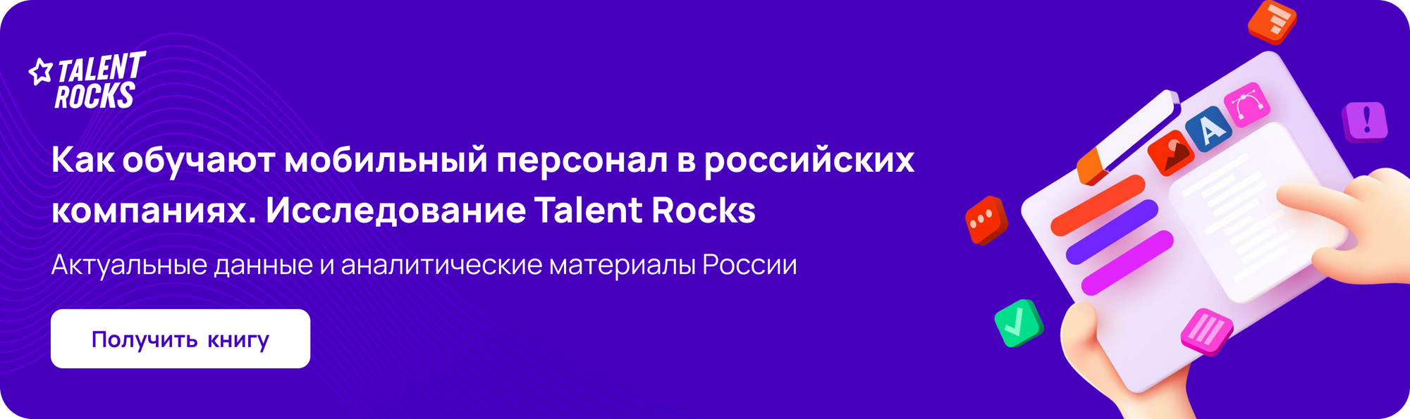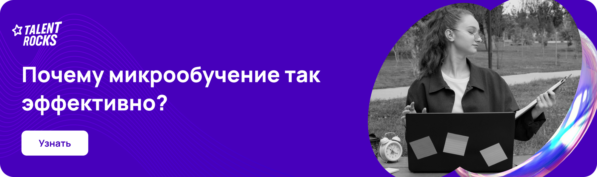 «Создайте такой обучающий опыт, от которого сотрудники не захотят отрываться, с помощью технологического решения от Talent Rocks» — говорит Екатерина Мовсумова.
