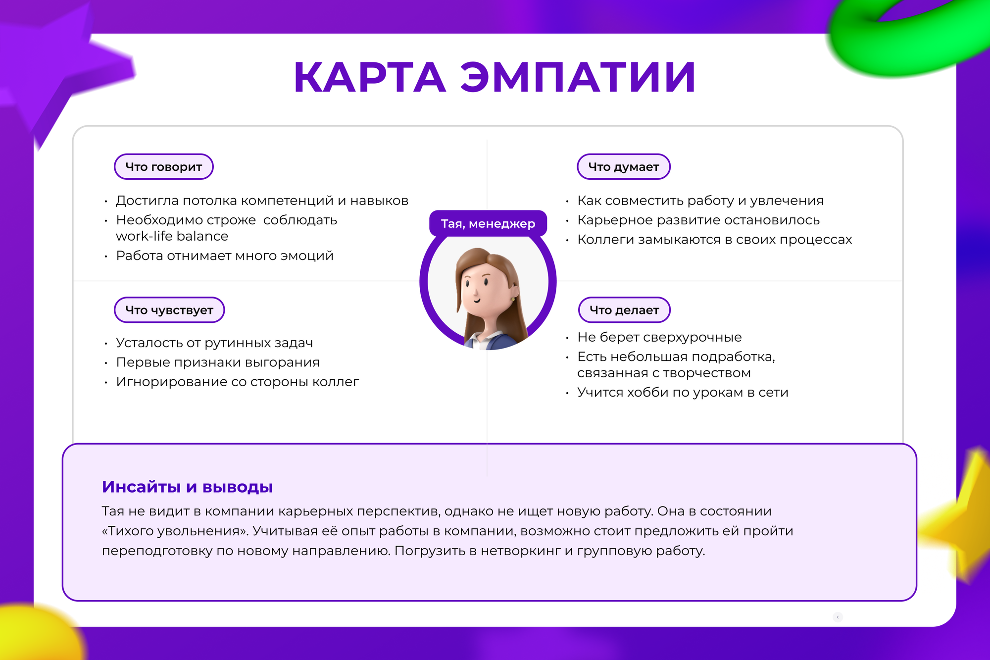 Для расширения портрета можно использовать карту эмпатии, которая также покажет, чего вы можете не знать о своей ЦА: