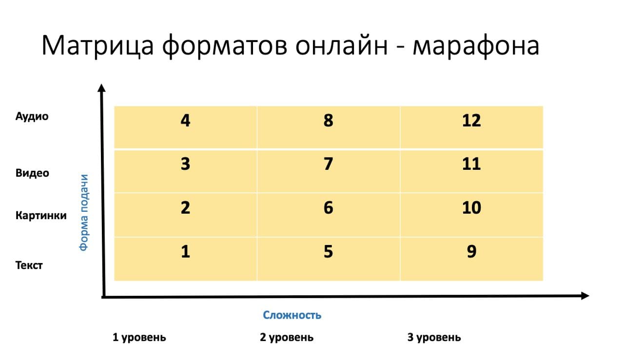 В марафонах простые, но разные по формату задания и их быстрое выполнение подкрепляют успешность, участники сохраняют мотивацию, участники не успевают устать.