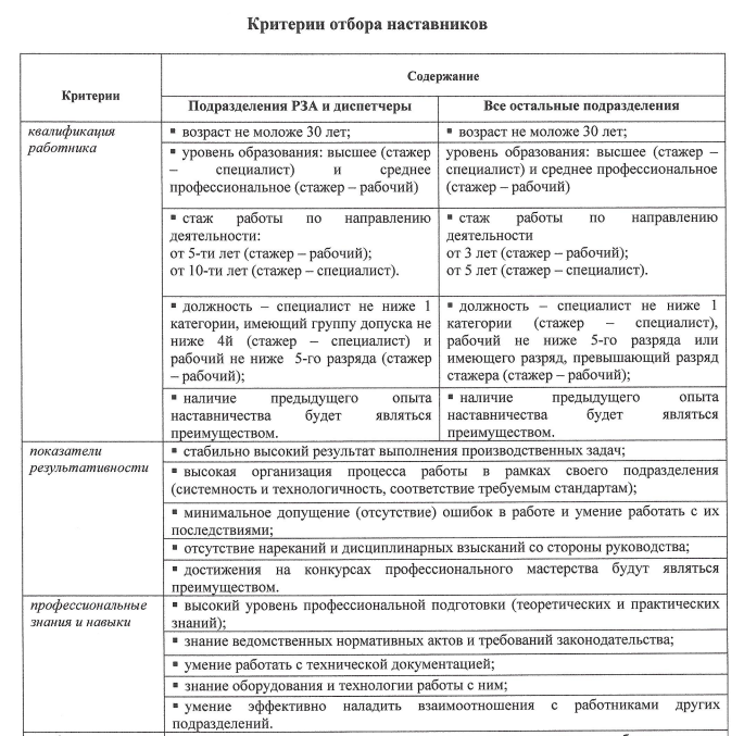 Аналогично нужно указать и требования к наставникам, их компетенциям и, при необходимости, пройденным программам.