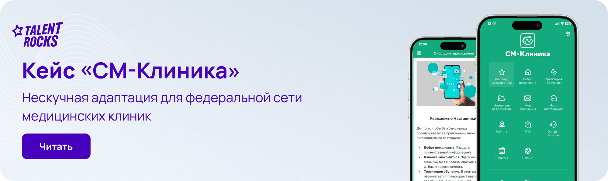 - Трансляция корпоративной культуры и повышение вовлеченности во время адаптации, а значит и снижения текучки