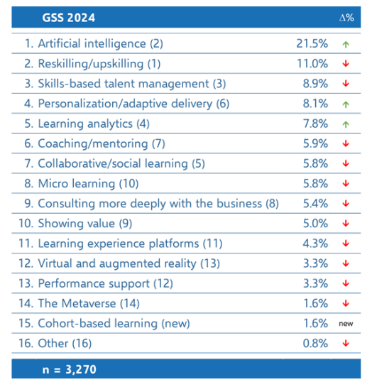 В исследование 2024 L&D Global Sentiment Survey приняло участие более 3270 специалистов, связанных с корпоративным обучением.