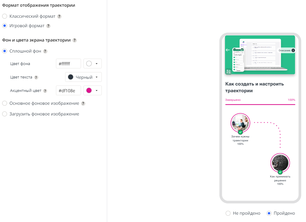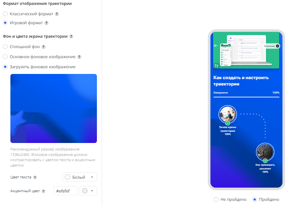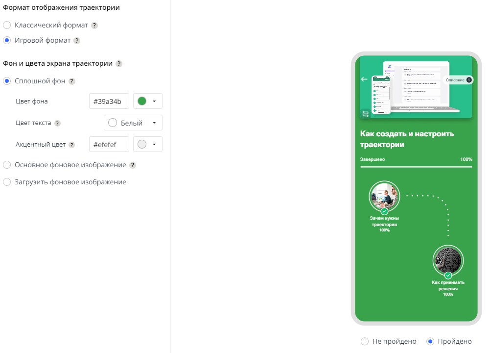 Когда администратор настраивает траекторию, он сразу сможет увидеть, как она будет выглядеть на платформе в процессе прохождения.